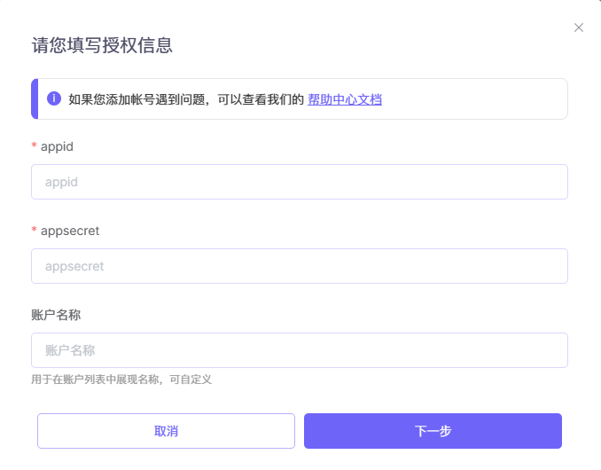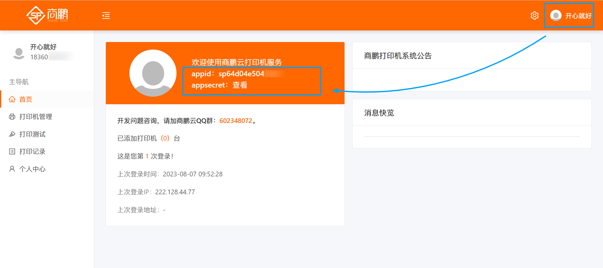 - 点击个人中心,即可获取到【appid】和【appsecret】2项信息,填入到集简云即可授权成功