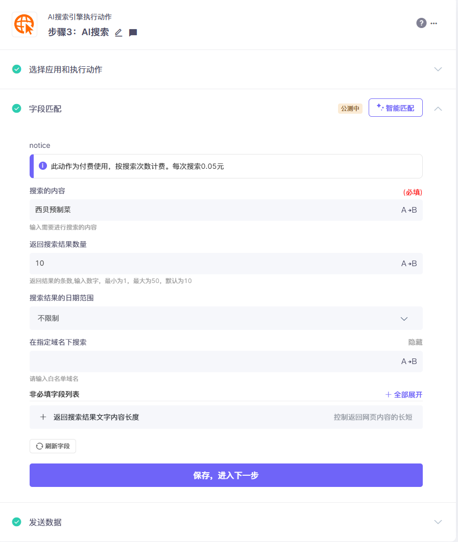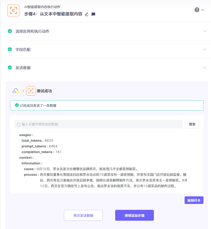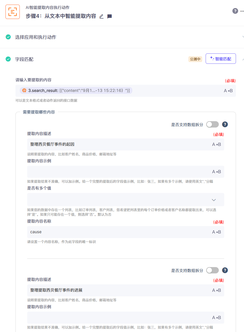 配合AI智能提取,让AI大模型按需求对内容总结或者指定信息提取: