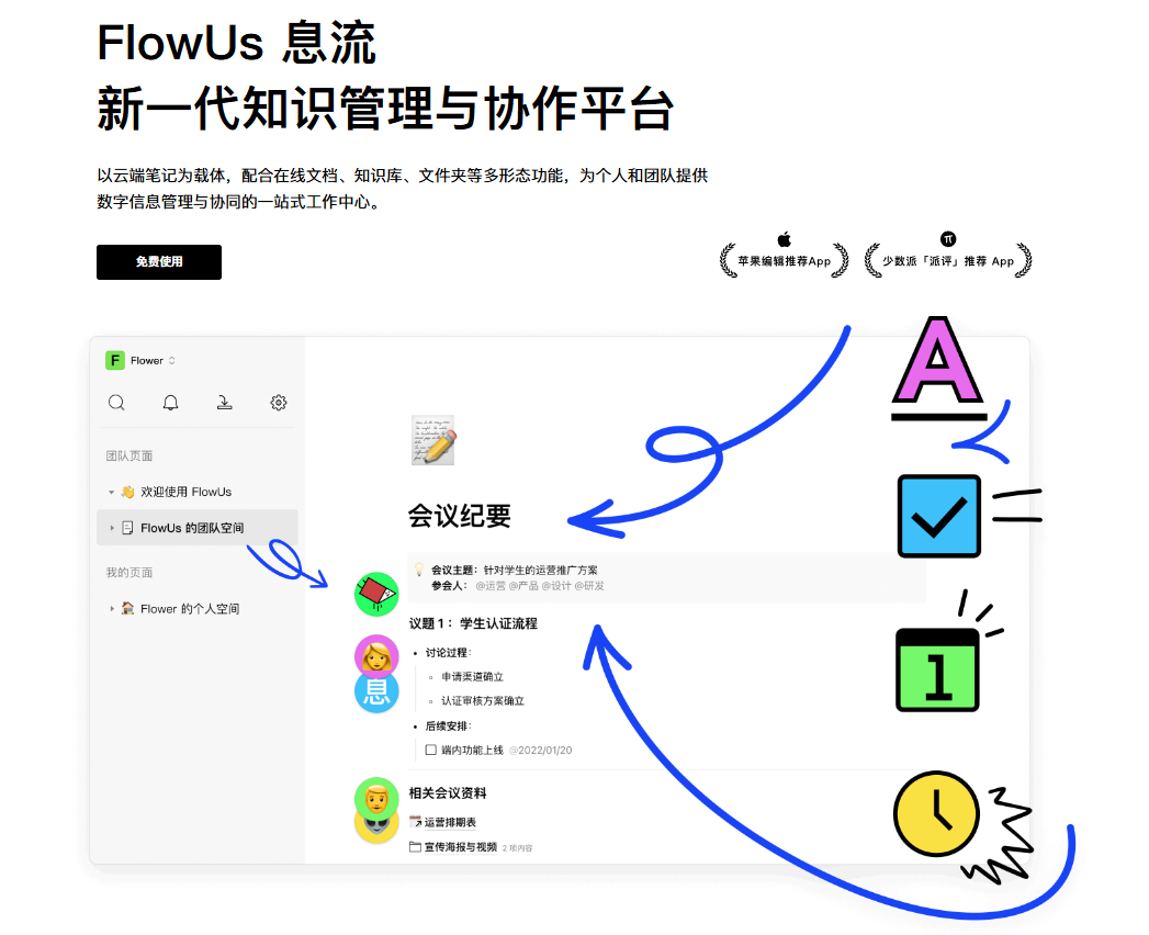 FlowUs(息流)是新一代知识管理与协作平台,以云端笔记为载体,配合在线文档、知识库、文件夹等多形态功能,为个人和团队提供数字信息管理与协同的一站式工作中心。