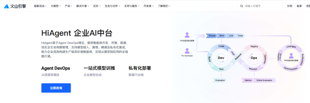 官网:https://www.volcengine.com/product/hiagent