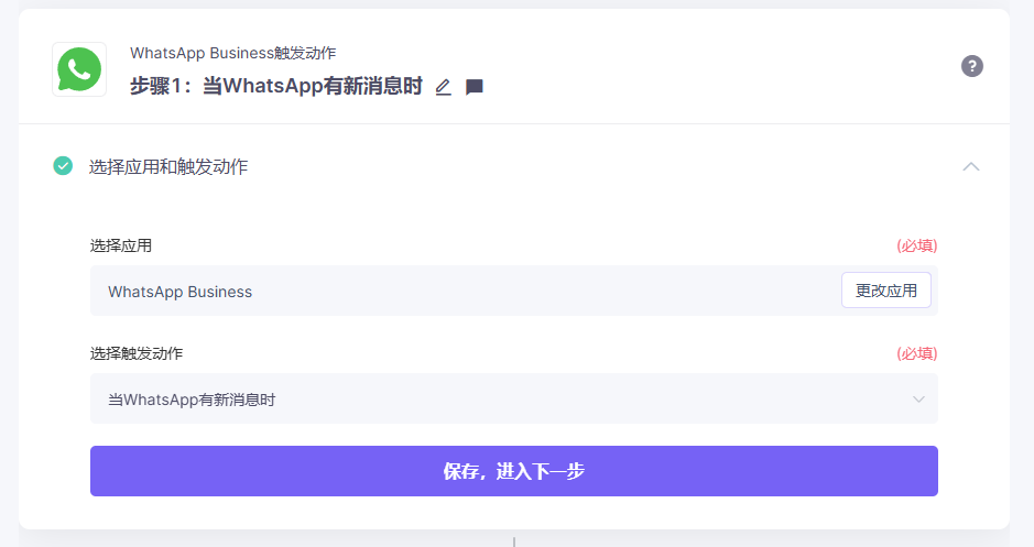 在连接器中可以将WhatsApp作为触发和执行步骤节点使用: