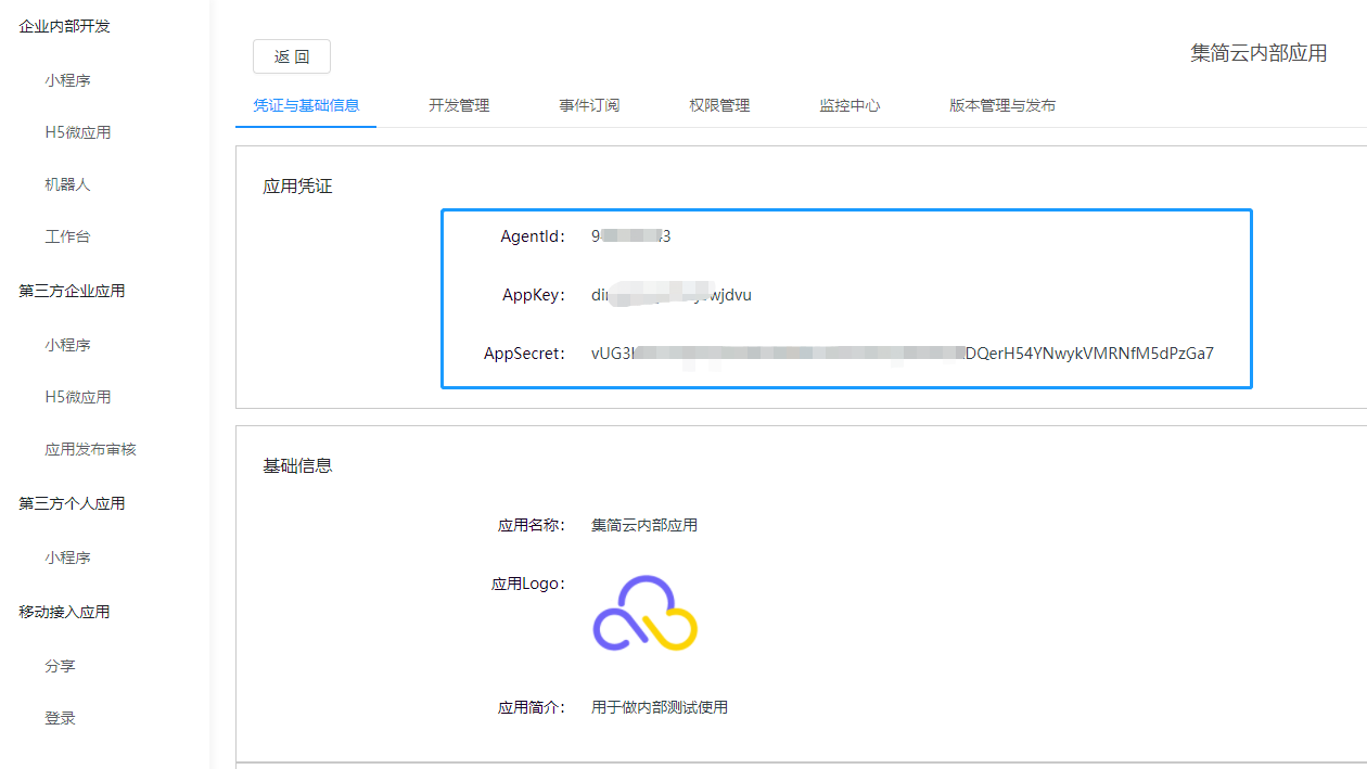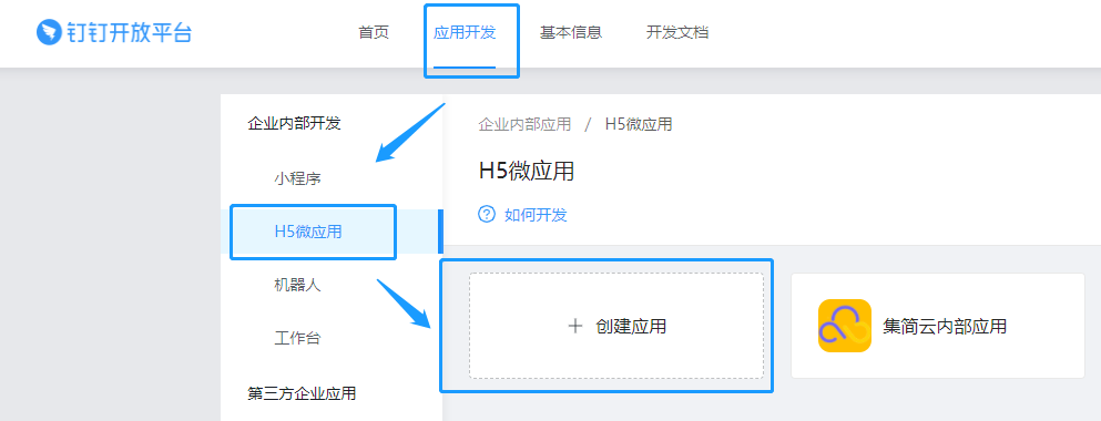 登录后,在应用开发/H5微应用中,创建应用或者使用已经创建过的应用