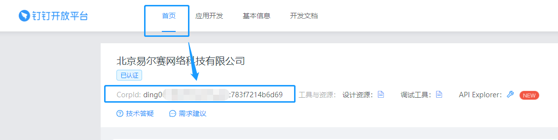 然后进入开放平台的帐号首页,在企业信息下获取企业ID, CorpID
